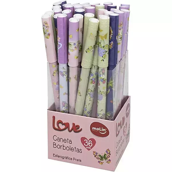 Caneta Esferográfica Love Borboletas Tinta Preta - Molin