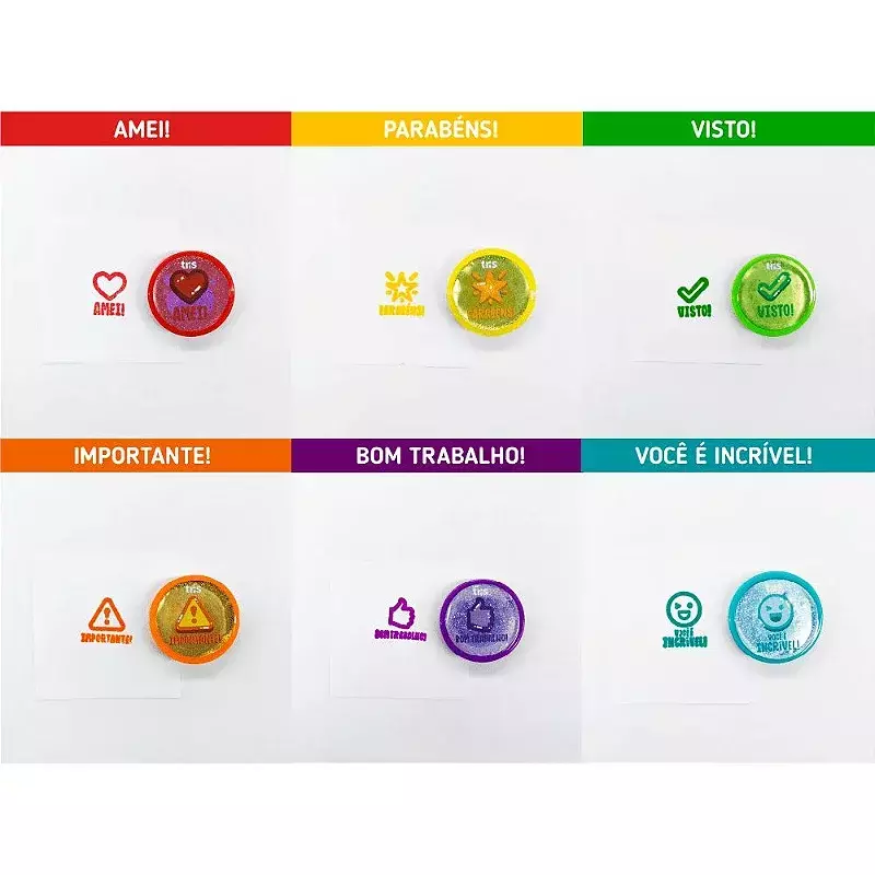 Destaques do produto: - Praticidade: O sistema auto tintado facilita o uso, permitindo carimbar rapidamente sem a necessidade de almofadas extras. - Estimula a criatividade: Incentiva o envolvimento das crianças em atividades pedagógicas de forma lúdica. - Diversão garantida: Ideal para personalizar trabalhos escolares, cadernos e projetos artísticos.