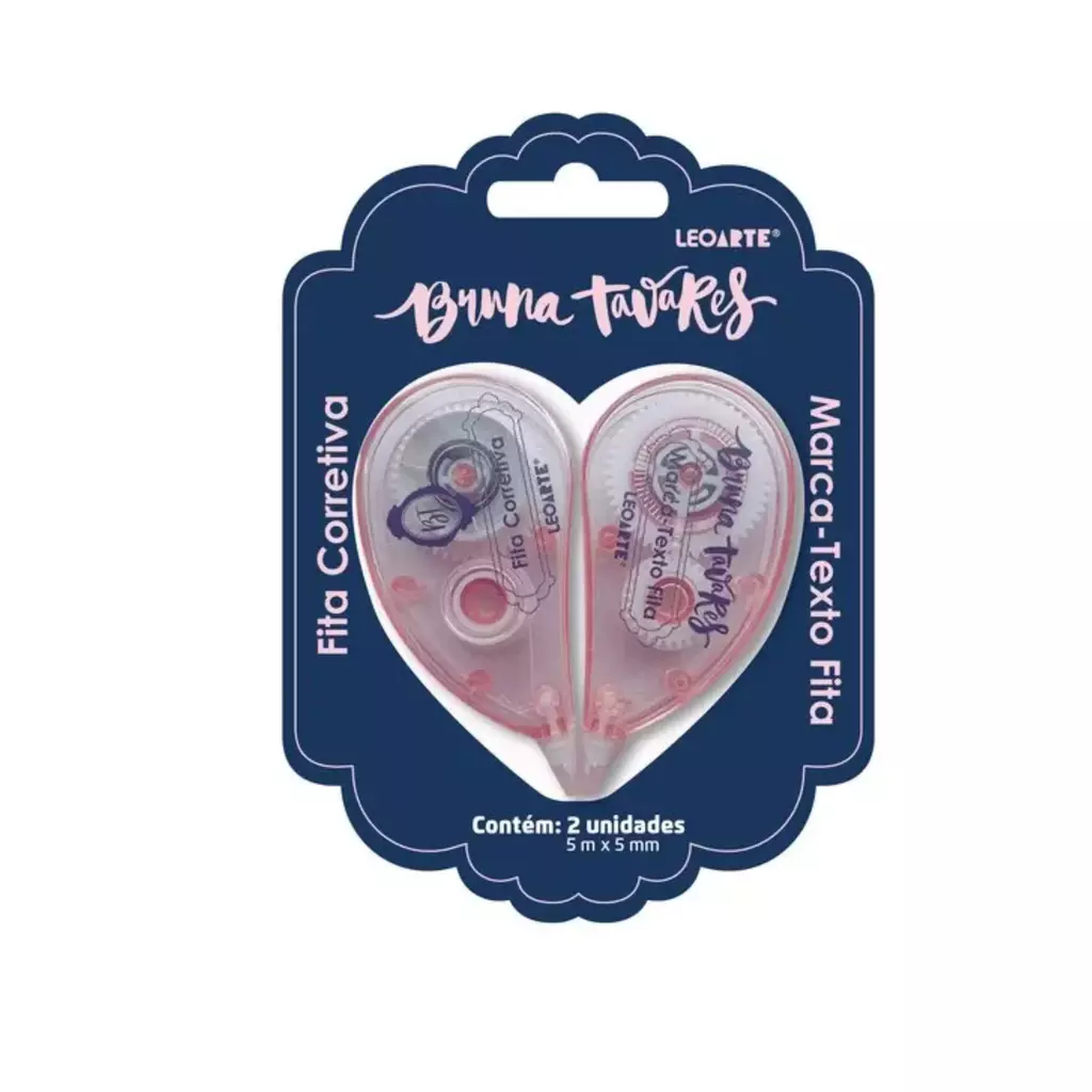 FITA CORRETIVA + MARCA TEXTO EM FITA ROSA - BRUNA TAVARES Transforme suas anotações com a praticidade e estilo da fita corretiva que também funciona como marca texto! Desenvolvida pela Bruna Tavares, essa fita em tom rosa é a escolha perfeita para quem busca eficiência e um toque de charme no dia a dia.