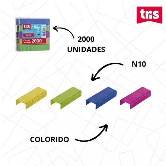 Conheça o Grampo Cor Tris Holic N10, a solução prática e colorida para organizar seus documentos com estilo e eficiência! Ideal para uso escolar, profissional ou doméstico, este grampo combina resistência e design vibrante para facilitar sua rotina.