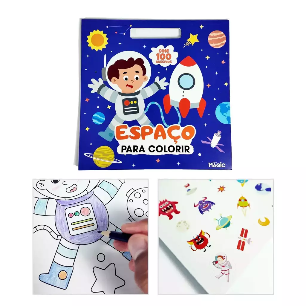 Descubra o Livro de Colorir Adesivos Bloco Gigante Espaço, a aventura criativa que vai levar a imaginação das crianças para as estrelas! Com um tamanho gigante e páginas repletas de desenhos incríveis do universo, esse livro é perfeito para pequenos exploradores que amam colorir e colar.