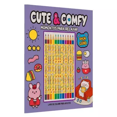 LIVRO P/ COLORIR 24FLS CUTE & COMFY C/12 LAPIS - Momento para Relaxar: