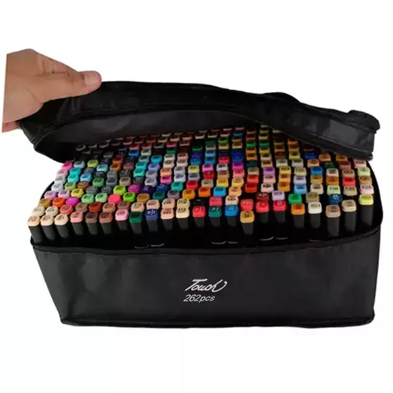 Descubra a Mala Preta 262 Canetinhas Ponta Dupla, o estojo perfeito para quem ama expressar criatividade em qualquer lugar. Com 262 canetinhas incríveis, cada uma com ponta dupla, você tem uma variedade de cores e estilos para desenhar, colorir e destacar suas ideias com muita facilidade.