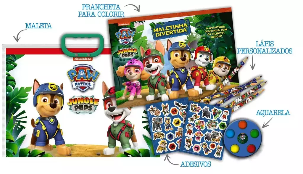 Descubra a Maletinha Divertida Patrulha Canina, o kit perfeito para a diversão e criatividade dos pequenos! Com guache, lápis de cor, livro de pintar e adesivos exclusivos, essa maletinha traz tudo que a garotada precisa para horas de brincadeira educativa. Leve a magia dos filhotes mais queridos para casa e estimule a imaginação com produtos de qualidade que encantam e divertem. Garanta já a sua e transforme o dia da criançada em uma aventura colorida e inesquecível!