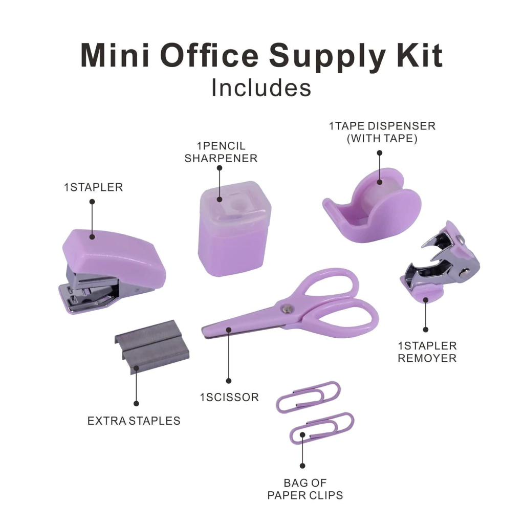 Este kit completo inclui tudo o que você precisa para um dia produtivo: - Grampeador compacto com 500 grampos nº 10 para prender seus documentos com facilidade. - Extrator de grampos para corrigir erros sem esforço. - Suporte para fita adesiva com uma fita extra para você não ficar na mão. - 20 clips de 28 mm para organizar papéis soltos. - Além disso, uma tesoura afiada e um apontador completam o kit, garantindo praticidade em todas as tarefas.