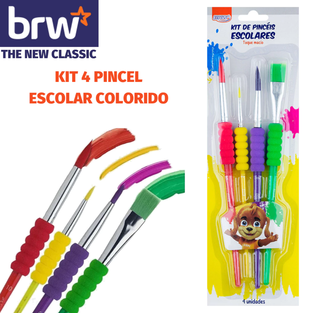 PINCEL ESCOLAR 4PCS COLORS - O toque de cor que falta para seus projetos escolares!