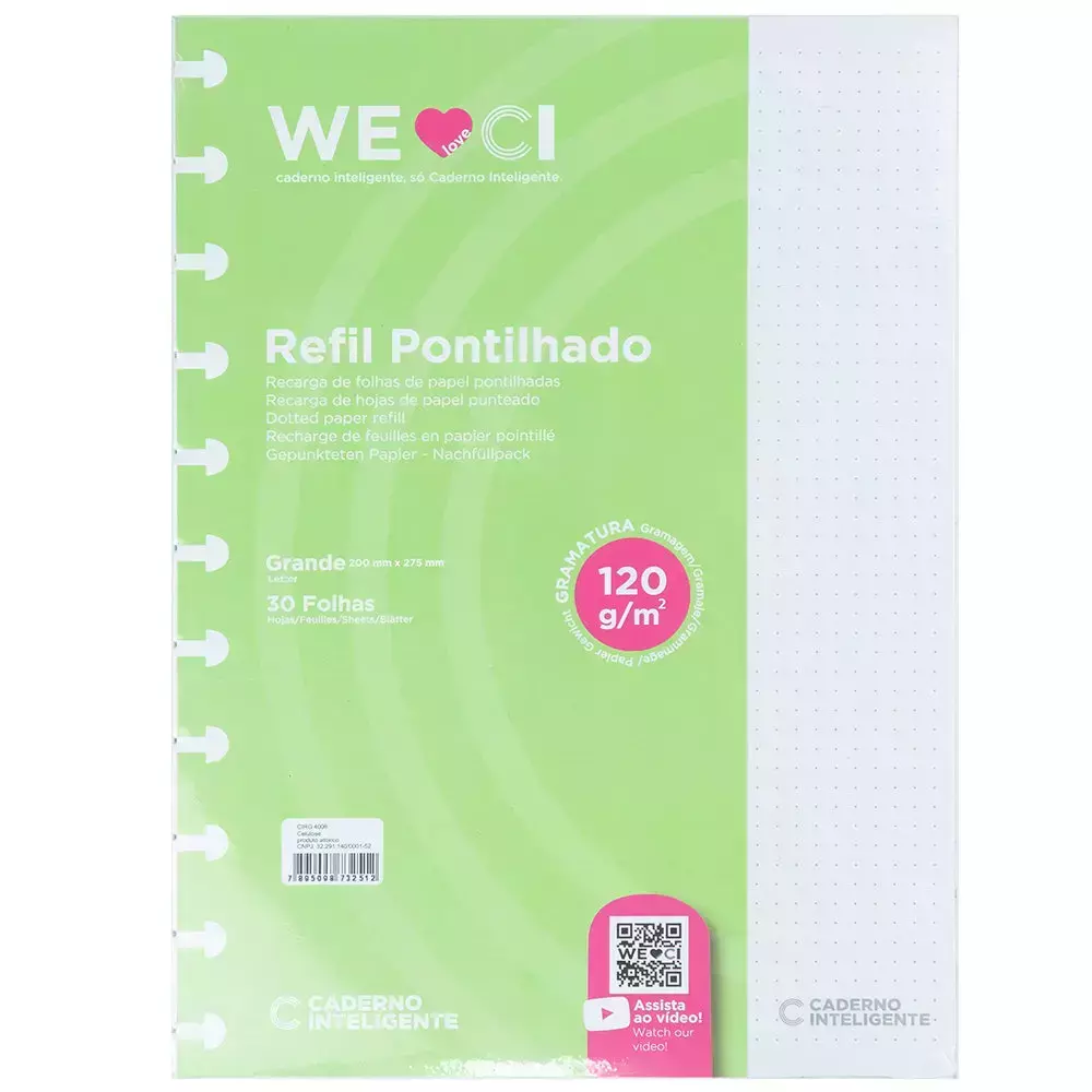Conheça o Refil Pontilhado GRD 30FL 120GR C.INT, o complemento ideal para suas anotações e projetos de alta qualidade! Com papel de 120 gramas, ele oferece resistência e durabilidade, perfeito para quem busca um acabamento profissional.